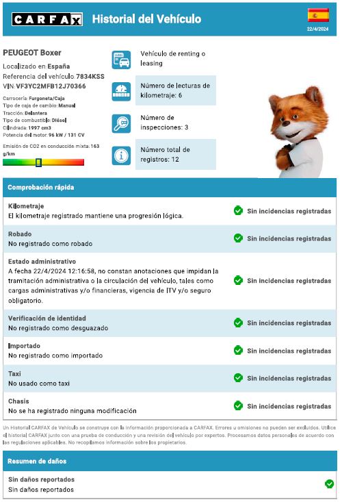 Como ya hemos dicho, para nosotros el primer filtro siempre es pedir un informe CARFAX porque ahí puedes ver si el anuncio de venta es sincero o intenta ocultar algo. Si estás mirando en plataformas donde comprar furgonetas de segunda mano, puedes pedirlo desde ahí directamente porque muchas tienen un enlace a CARFAX desde los anuncios.