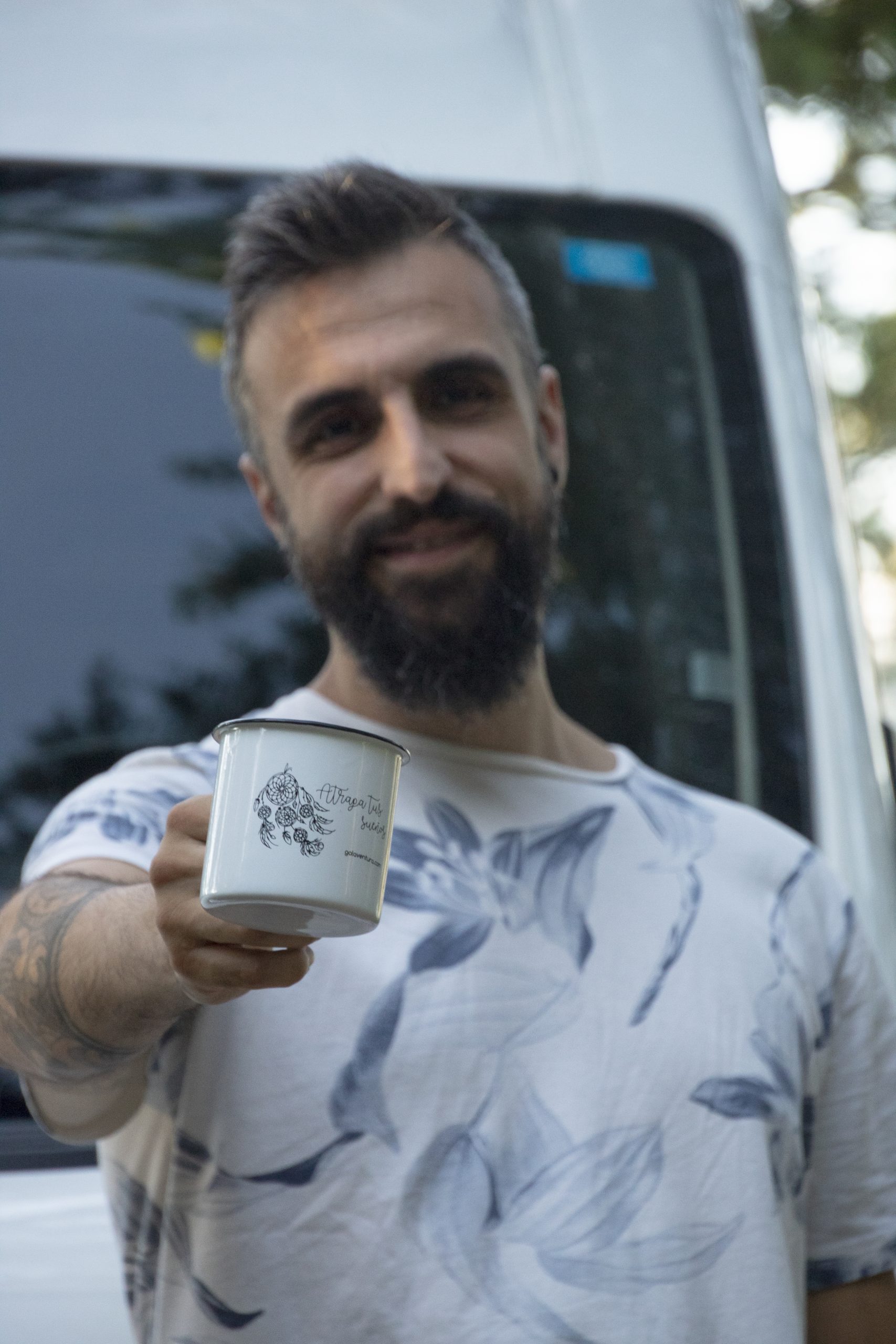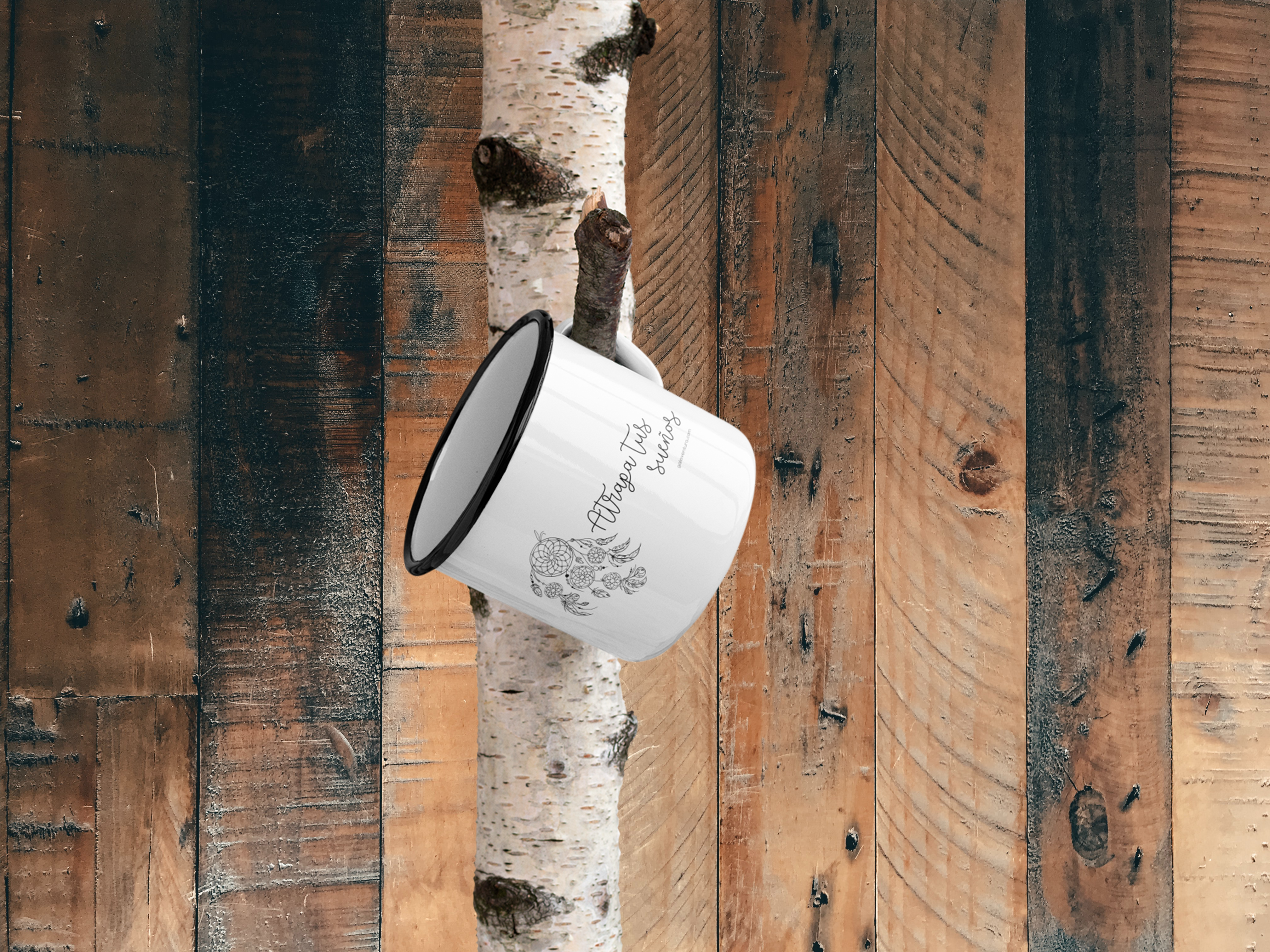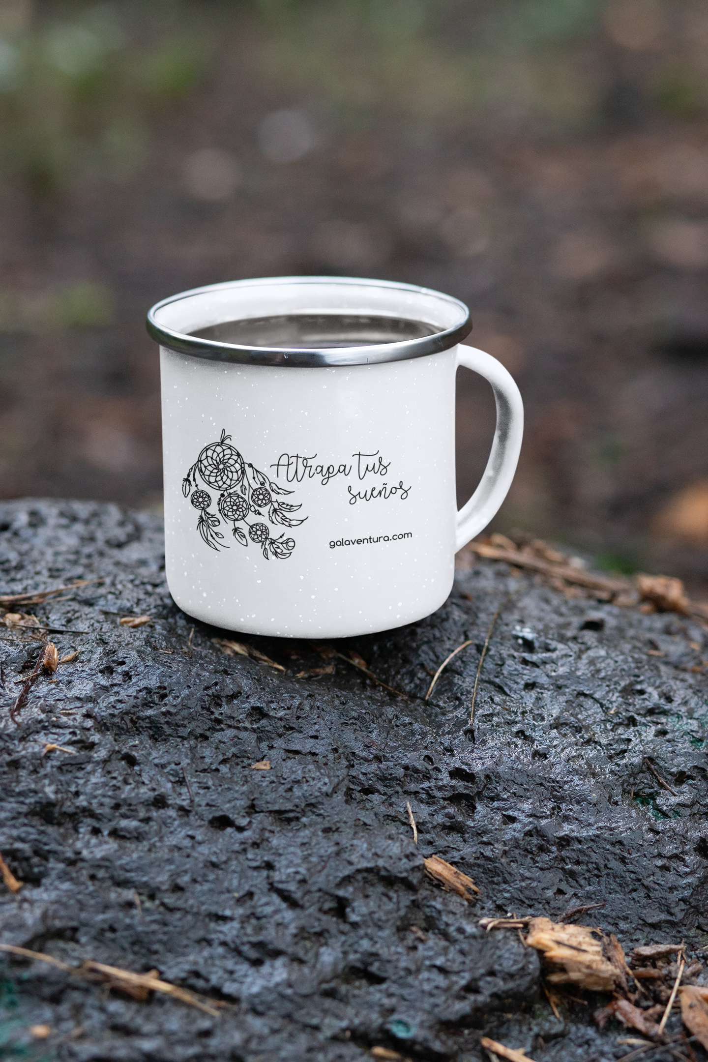 Taza de metal esmaltado de estilo vintage de 350 ml de capacidad. Duradera y ligera, apta para cualquier situación. El acabado imperfecto de esta taza le da un aspecto retro.